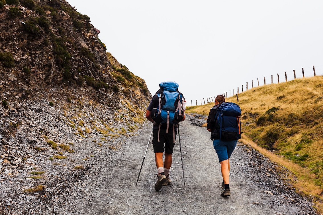 bepsy Shutterstock Pilgrims walking in the mountains of the Pyrenees, on the border between France and Spain. Path from Saint Jean Pied de Port to Roncesvalles. Pilgrimage of Compostela, Camino de Santiago.